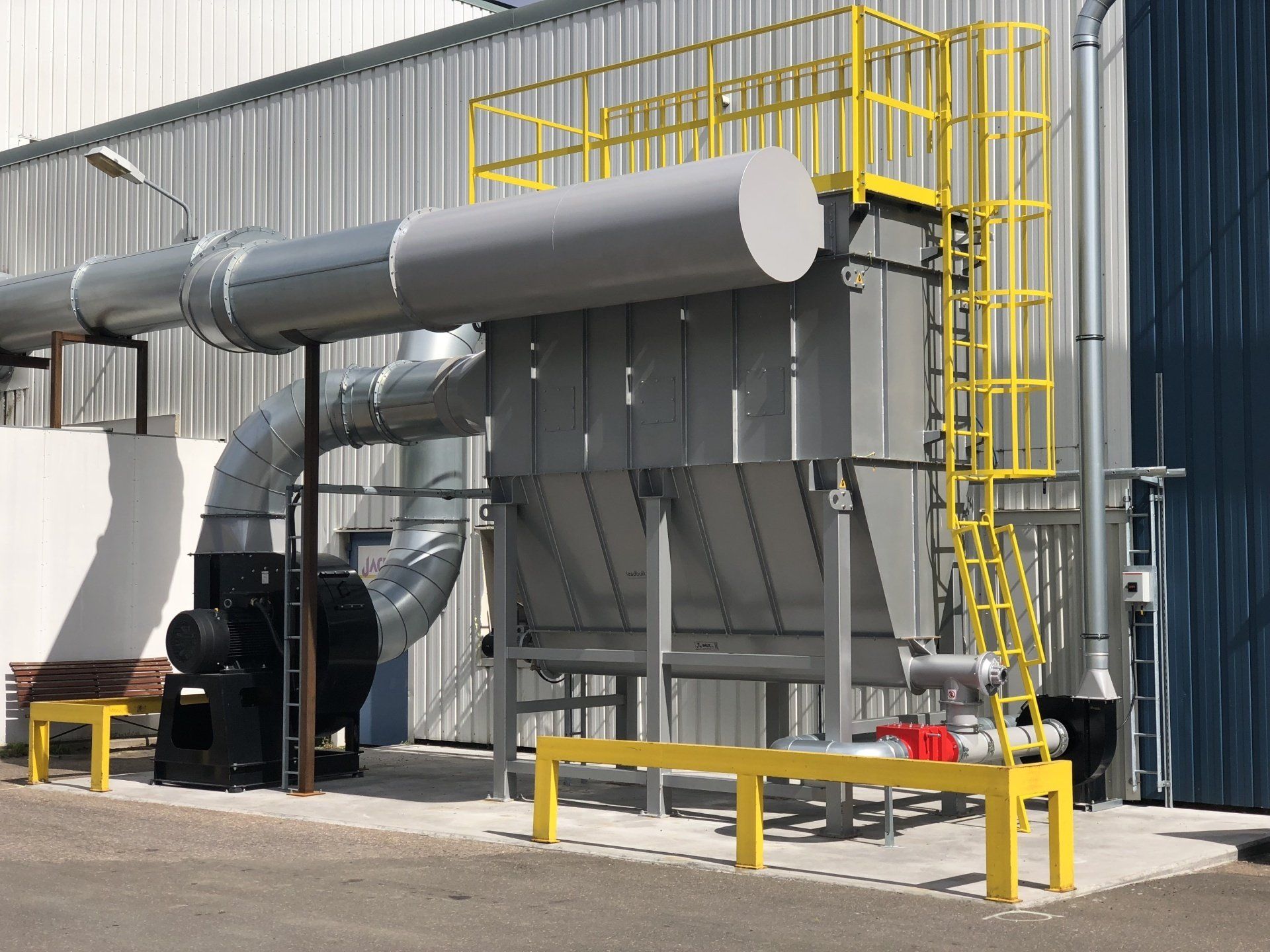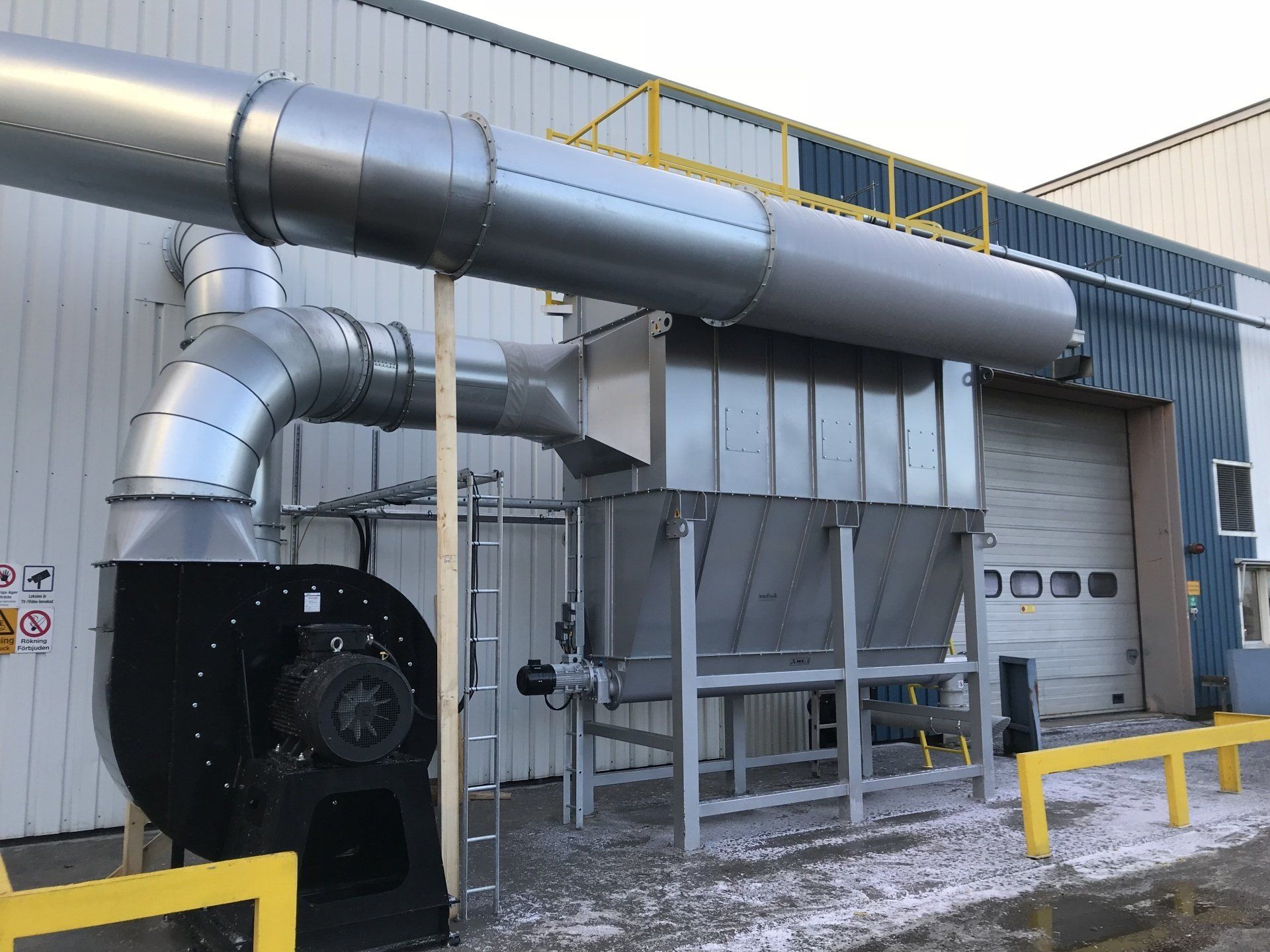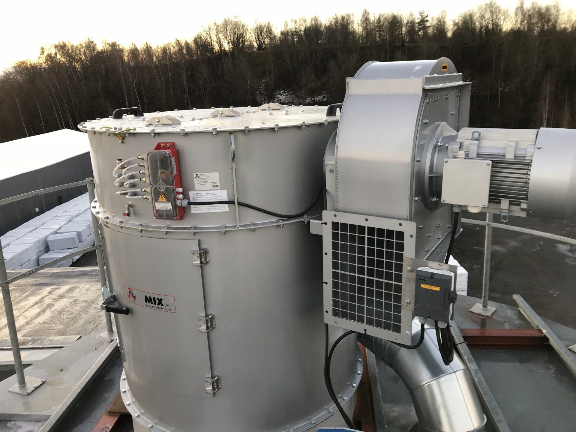 Leverans och installation av filter och fläkt för aspiration och transport av polystyrenplast som uppstår vid sågning/fräsning vid tillverkning av EPS och XPS isolerings skivor. I installationen användes MIX SRL patronfilter på 315 m² filteryta.