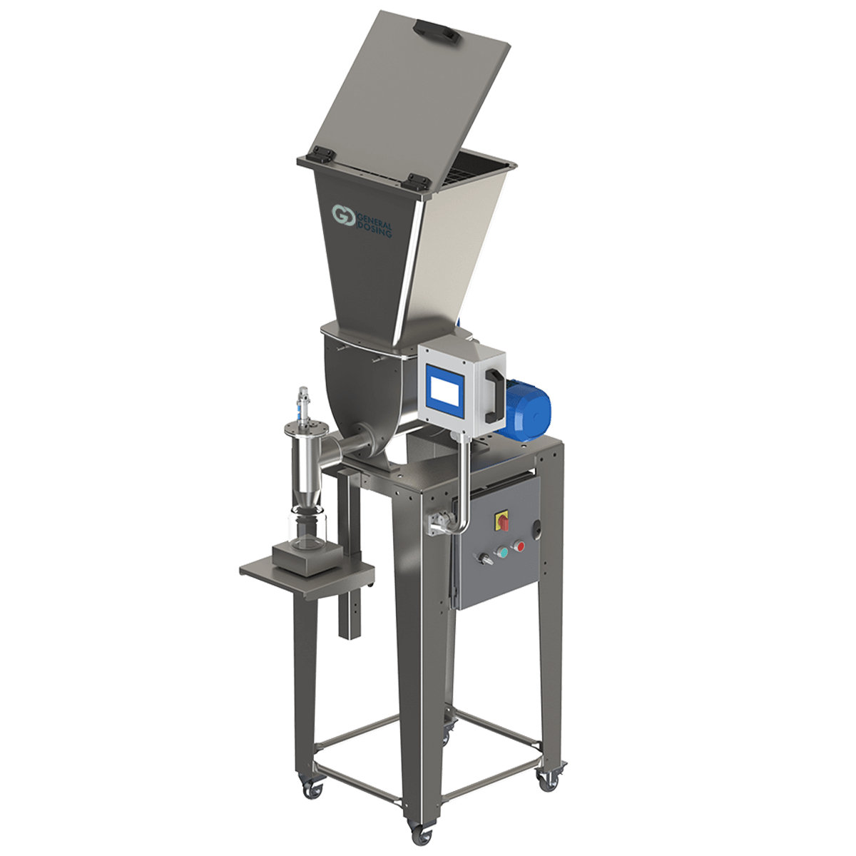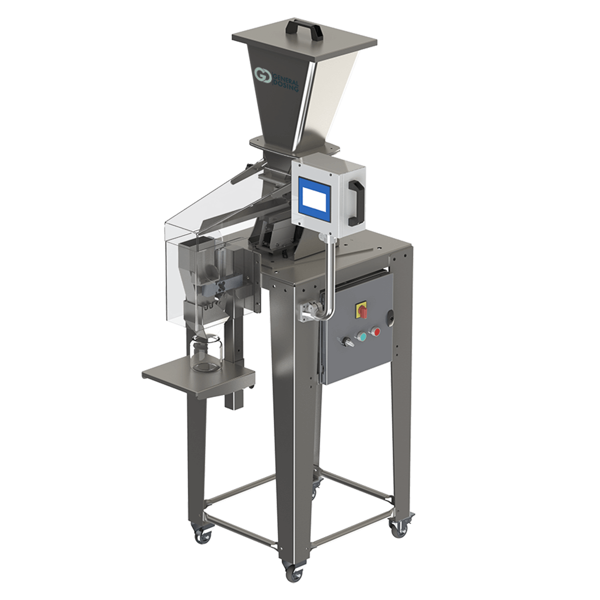 Det är maskiner som accepterar olika behållarstorlekar som kan dosera mängder från några gram till högst 1 kg.