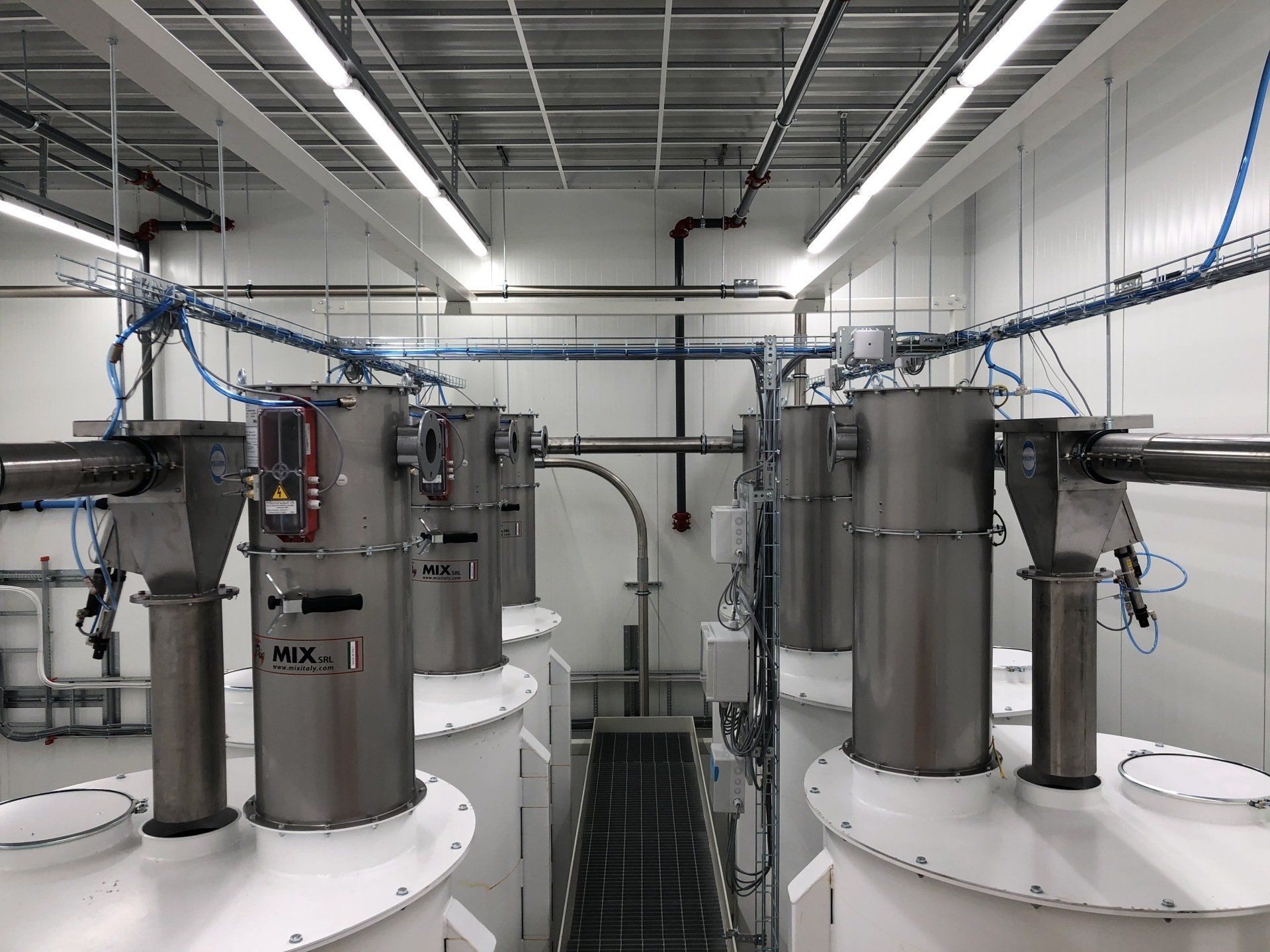 - Transport till blandare (pneumatisk eller mekanisk transport)
