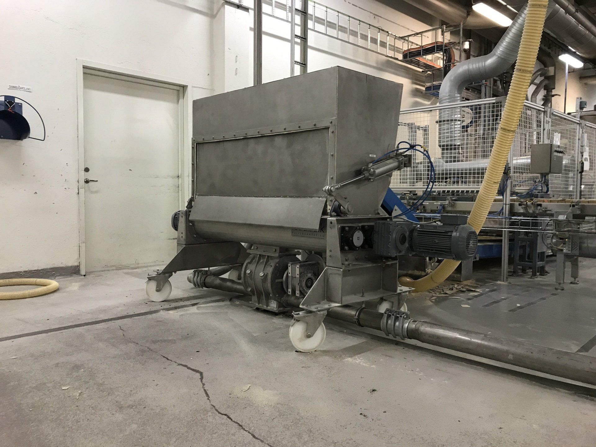 Förbehållare med "Skrap funktion" dvs. ett stort spjäll som möjliggör att ta ut produkten i conteinrar.