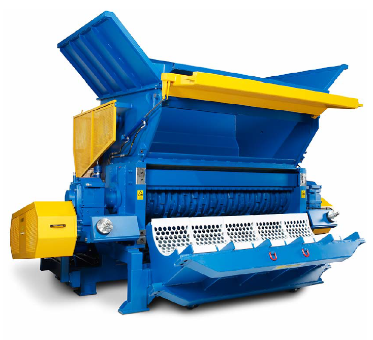 Kraftig rotor med tänder som river balen samtidigt som en platta pressar balen mot rotorn