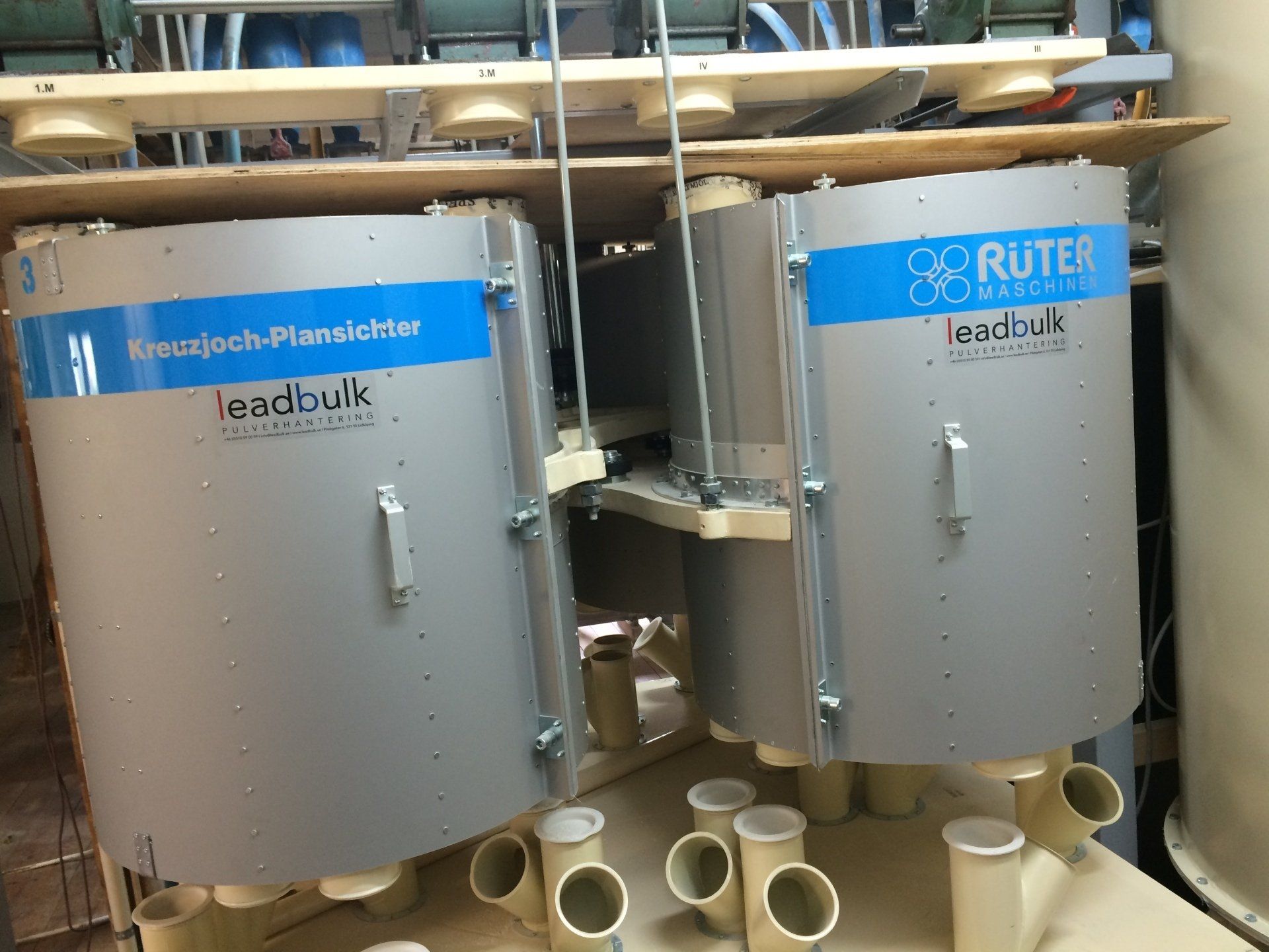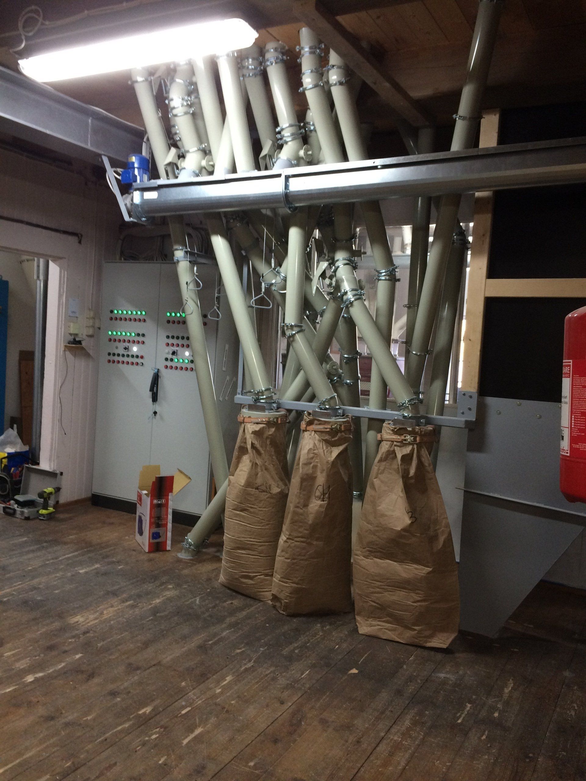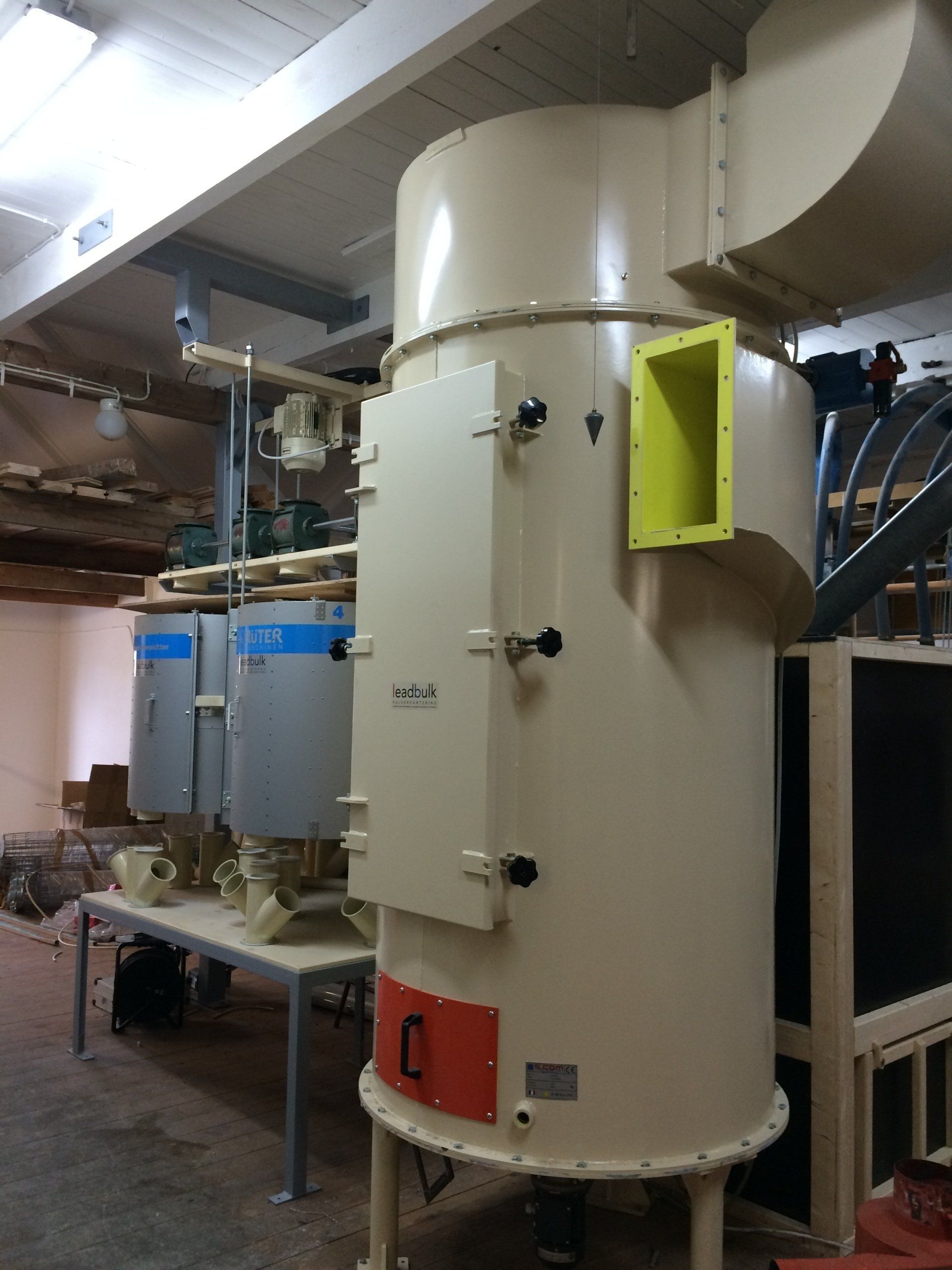 - Påsfilter med fläkt anpassat och beräknat av Leadbulk att transportera malgods från valsstolar till cykloner innan siktning.