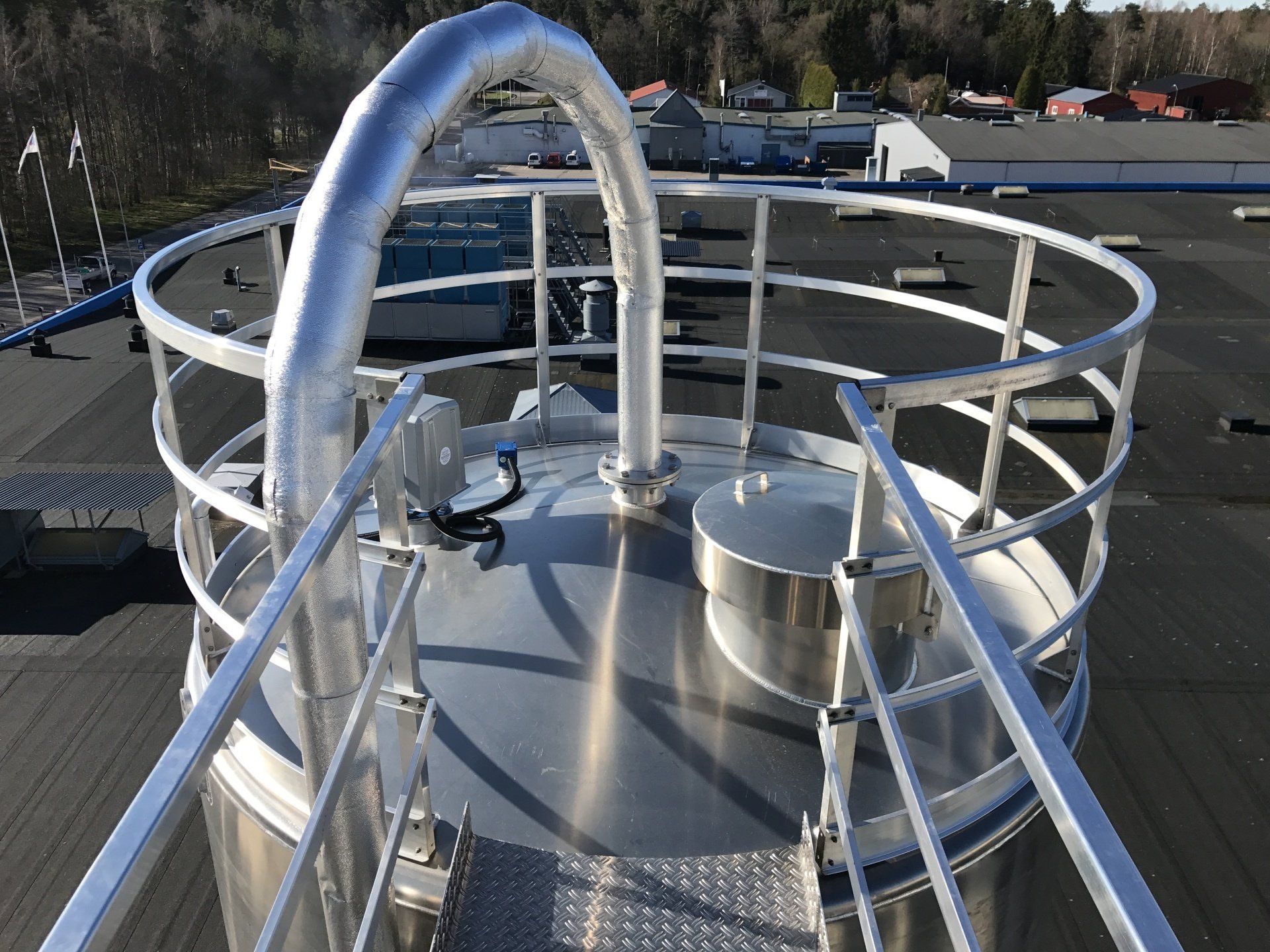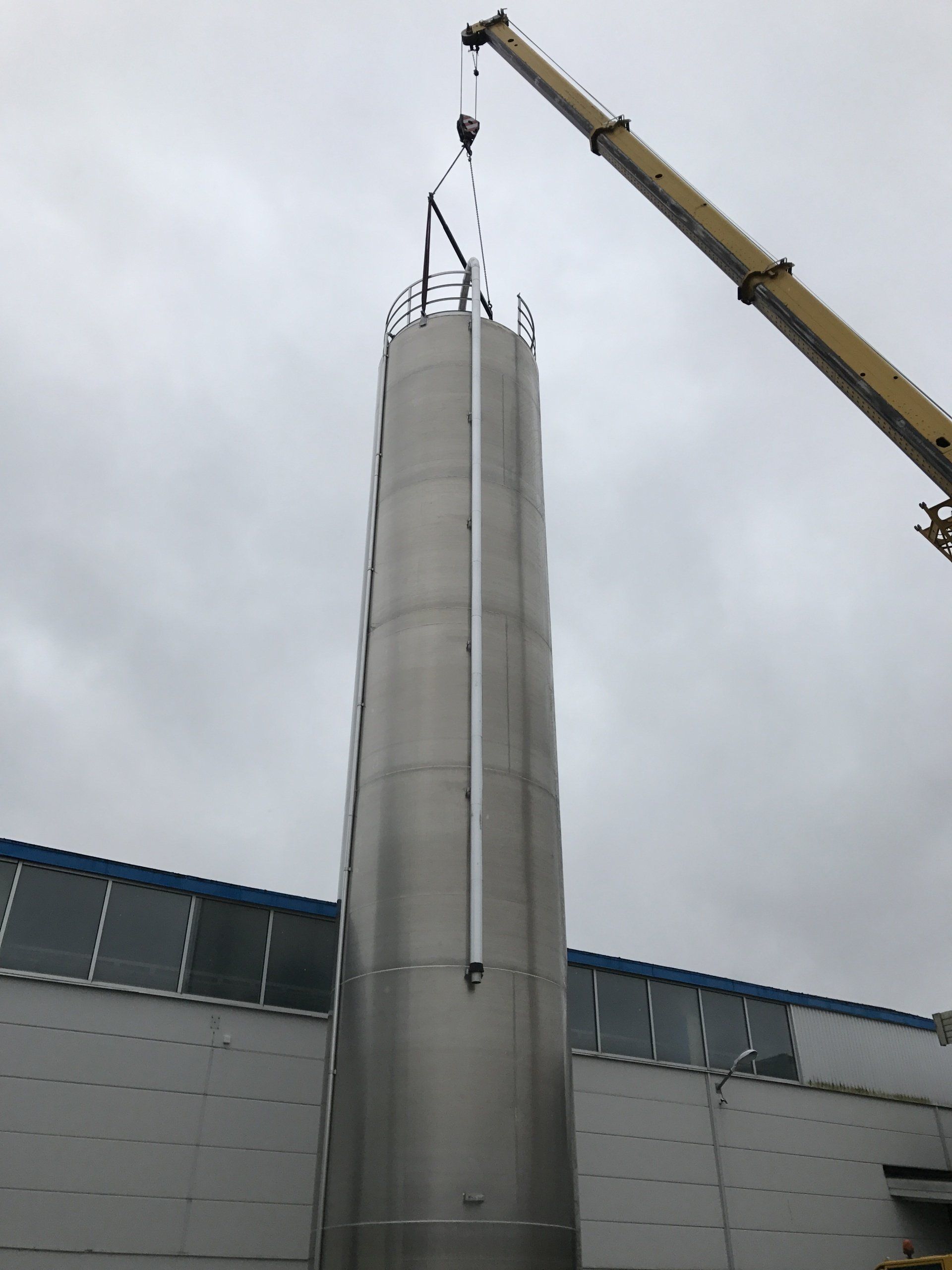 - 2 st silos, 100 m³/st, i aluminium, Ø 3000 mm. Manterlhöjd 16 250 mm