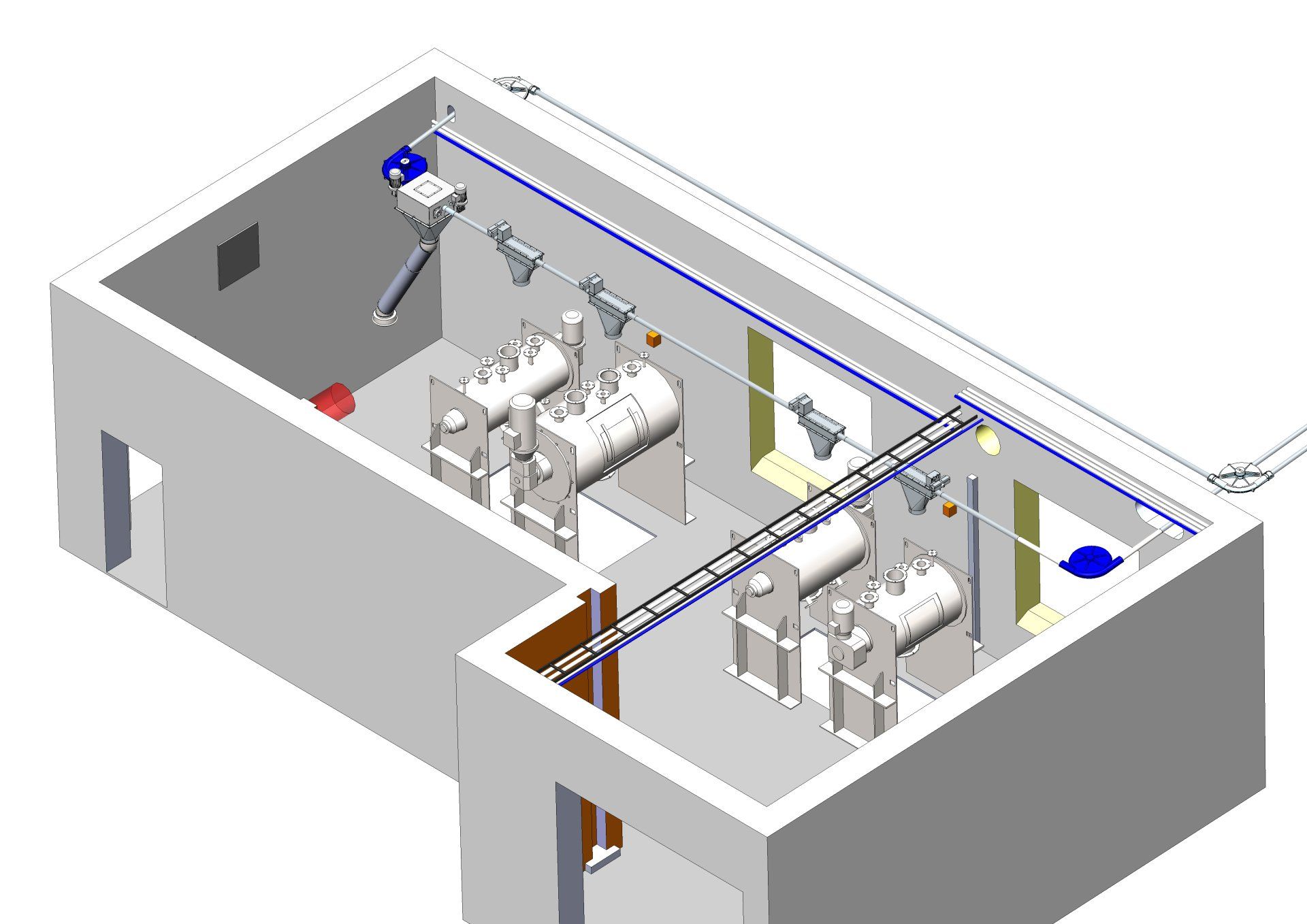 Transport av tobak kan ske med pneumatisk eller mekanisk transport. Nedan visas ett exempel på tobakstransport där uppvägning efter recept sker i en lokal långt ifrån själva blandningen. Transporten består av en diskkedjetransportör som är ca 100 meter lång. Diskkedjetransportörens fördel är att det på samma slinga och med en enda drift är möjligt att ha flera inlopp och utlopp.