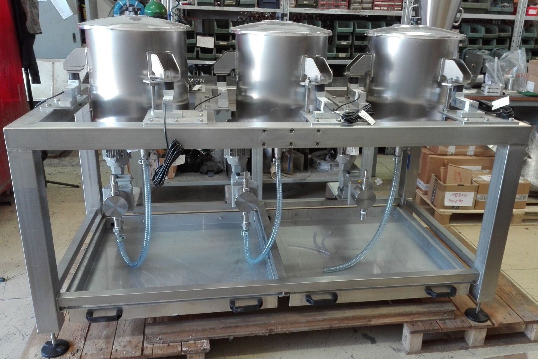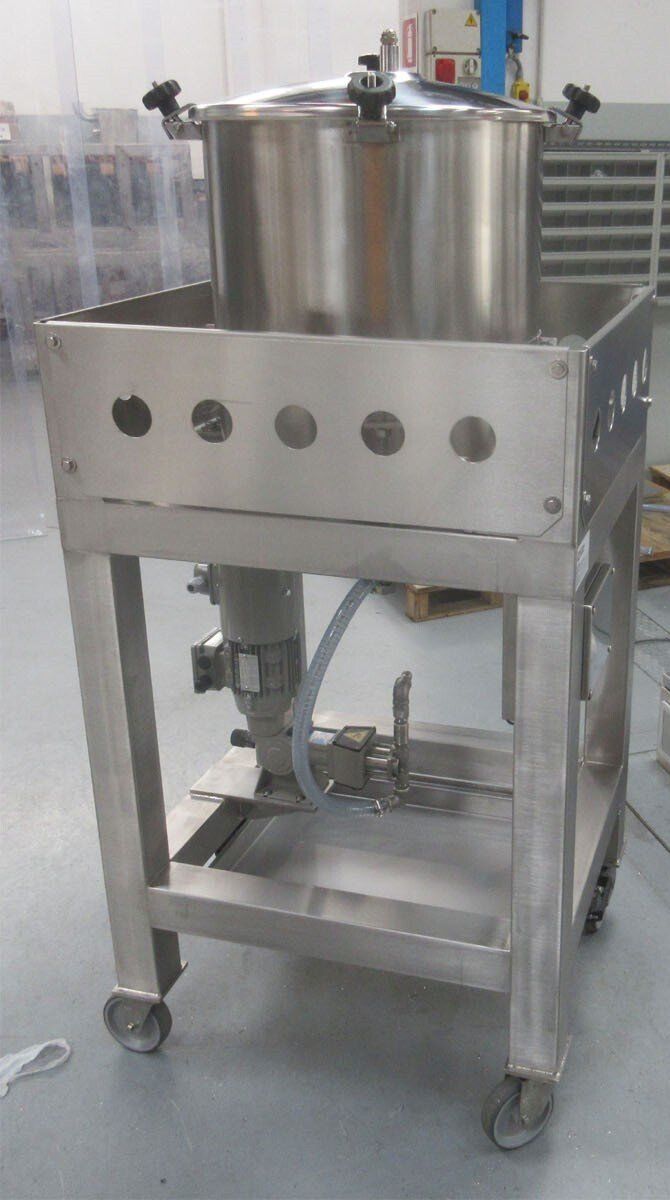 Hela maskinen kan förses med en gaffeltrucksfäste eller monteras på hjul för att flytta den till tvätt- och saneringsområdet.