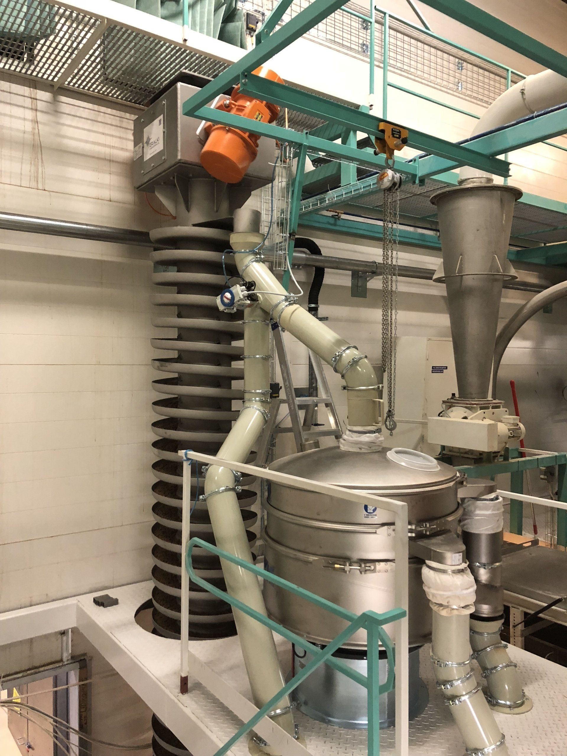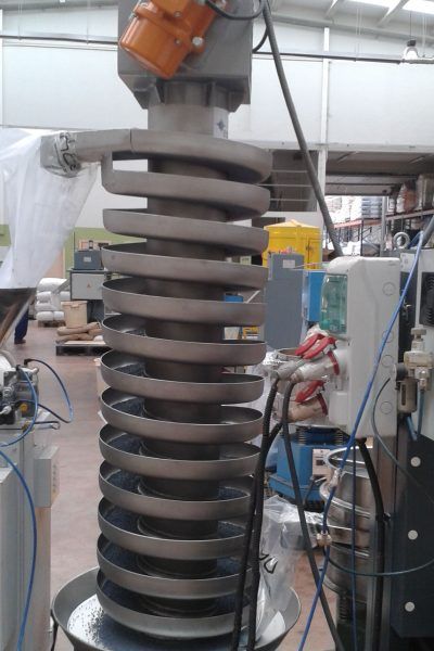 ERB-ERU-vertikaltransportör utmärker sig av sin enkla konstruktion som består av en spiralformad ränna som svetsats runt ett centrumrör vilken sedan bulkmaterialet vibreras fram och stiger i.